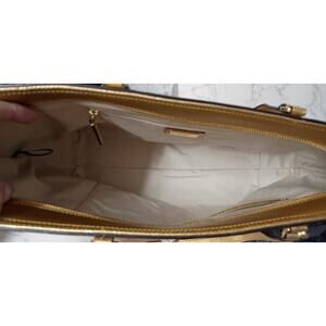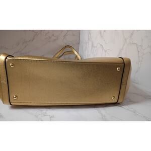 Lauren Ralph Lauren Metallic Gold Crosshatch Leather Medium Clare Tote - NEW