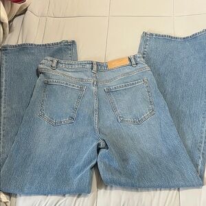 Stylish light blue denim jeans. Perfect for casual wear. rise-12 inches, inseam-31 inches. Wide leg.