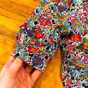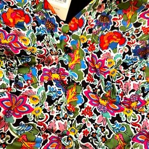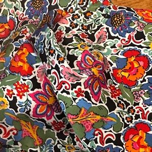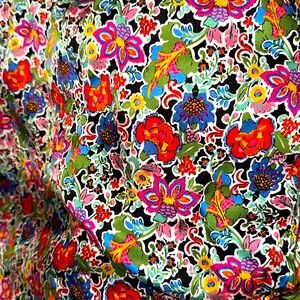 Black with vibrant multicolor floral design - pinks, blues, oranges and yellows- this dress works for any season.