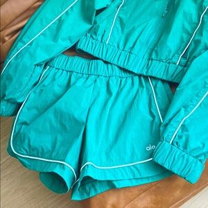 ALO Yoga Teal Jacket and Shorts Set