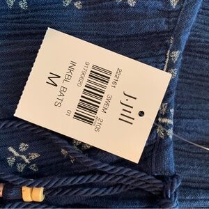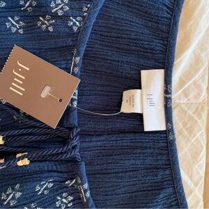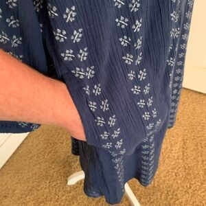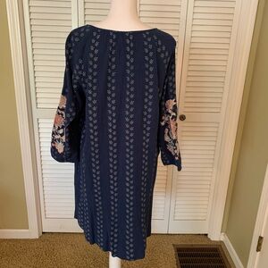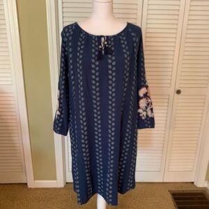 J Jill Blue Crepe Floral Women's Dress with Embroidered Sleeves Size M NWT