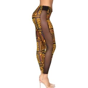 Fashion Nova Black and Gold Geometric Mesh Leggings. Size M.