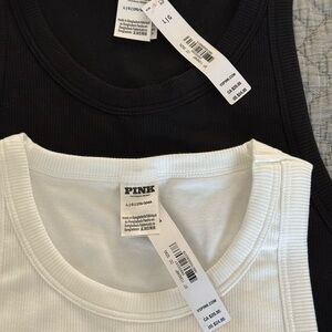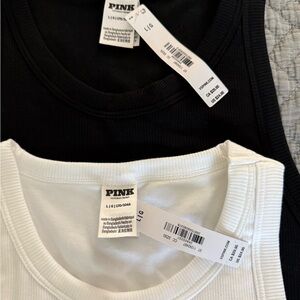 PINK Victoria's Secret Ribbed Tank Tops - White & Black (Set of 2) Lrg