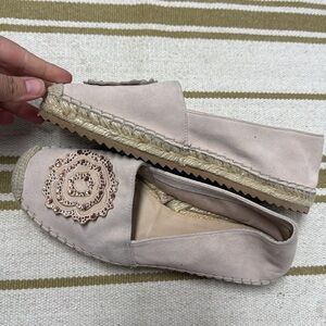 Karl Lagerfeld Paris Blush Pink Espadrille Flats Abby Suede Slip-On sz 7.5