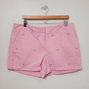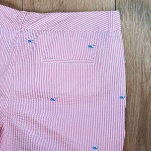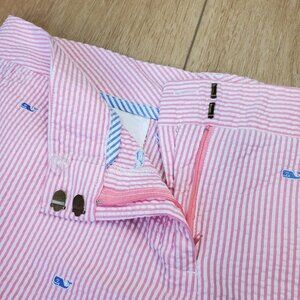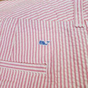 Vineyard Vines Womens Seersucker Pink White Nautical Whale Size L Beachy Preppy