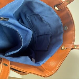 Stylish brown and white tote bag with a unique design. Perfect for everyday use.