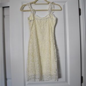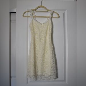 Stunning vintage 90s-inspired cream mini dress with floral lace overlay size M
