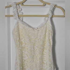 Ivory lace, slip dress, dainty, ethereal, bridal shower, cottagecore, whiskery lace, Y2K, 90s, milkmaid, babydoll.