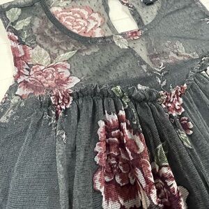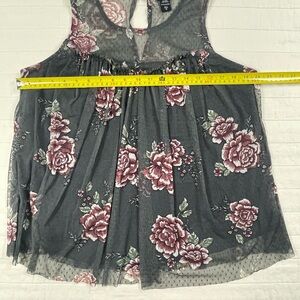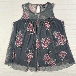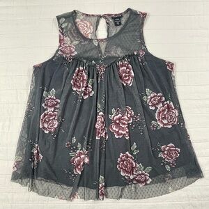 Torrid Floral Gray Sleeveless Mesh Overlay Romantic Blouse Size 0