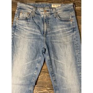 AG Adriano Goldschmied Farrah Boot High Rise Light Wash Fray Hem Jeans 28R Flare