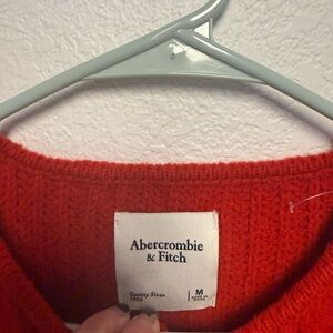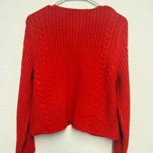 Abercrombie Red Cable Knit Cropped Cardigan Sweater Soft Cozy Wool Blend Medium