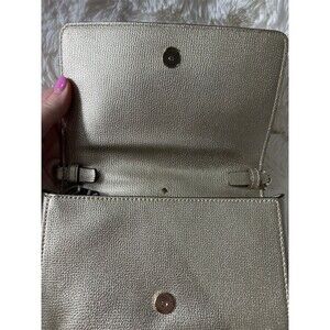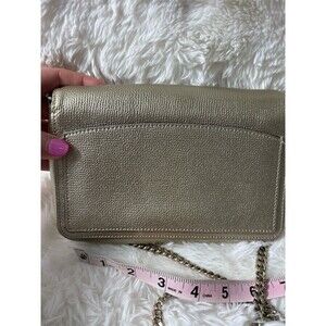 Keywords: kate spade new york, sylvia, wallet on chain, chain wallet, crossbody purse, metallic gold, pebbled leather, flap closure, silver hardware, chain strap, small bag, slim design, back pocket, womens handbag, logo accent