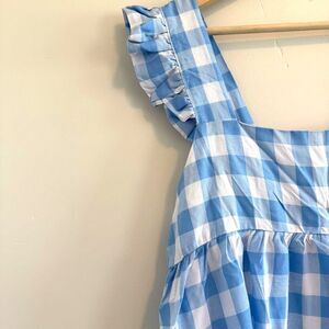 MISS SPARKLING fluter square neck ruffle blue gingham dress size Xl