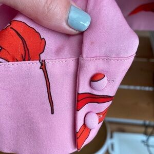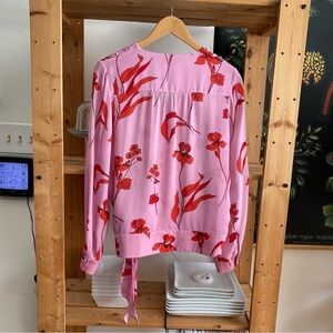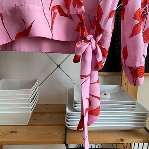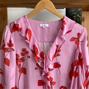 Parker Pink Red Floral Print Silk Blend Pasha Ruffle Wrap Blouse