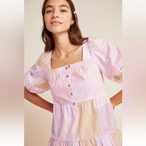 Anthropologie Maeve White Pink Orange Stripe Gable Tiered Tunic Top Small