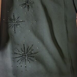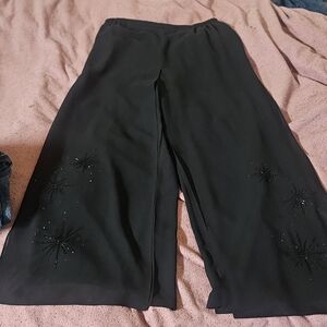 Stylish black wide-leg pants with elegant embellishments. Perfect for a sophisticated look.