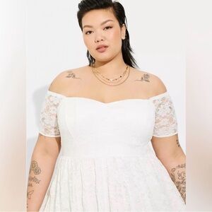 NWT Torrid Elegant White Lace Midi Off-Shoulder Dress size 2