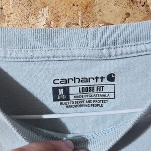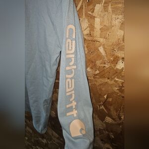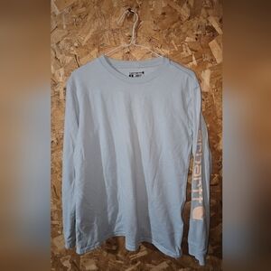 Carhartt Women's Long Sleeve Crew Tee in Pale Blue with Sleeve Logo
