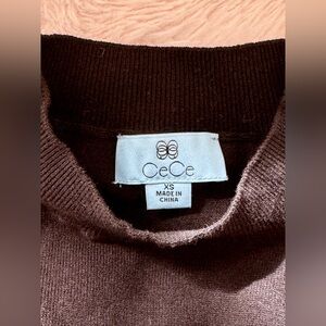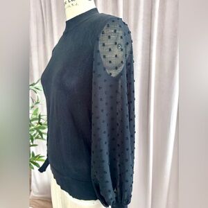 CeCe Black Mockneck Sweater with Sheer Dotted Sleeves