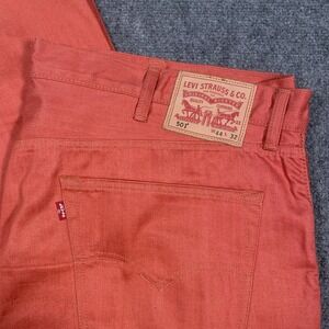 Levi's 501 Jeans Mens 44x32 Red/Orange Denim Cotton Straight Button Fly Workwear