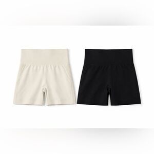 Stylish high-waisted shorts in black and cream. Tummy control and butt lifting. Perfect for working out.