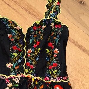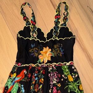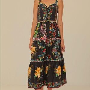 Farm Rio Black Delicate Forest Scarves Organic Cotton Maxi Dress Small