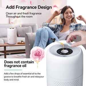 Enjoy Fragrant Air: The air outlet of the purifier has a groove where you can add 4-5 drops of your favorite essential oil . When the purifier circulates fresh air, the fragrance fills the entire room, helping you reduce stress, improve mood, and create a pleasant and healthy environment for you and your family.