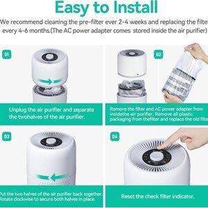 Low Decibel and Night Light: Bedroom Air Purifiers Equipped with soft night light function and 24dB ultra-low sound. Just touch the button, the warm and non glaring night light will light up gently, creating a warm and peaceful atmosphere. At the same time, its excellent silent technology ensures almost no noise during night work, without disturbing your rest. Whether used in the bedroom, children's room, or elderly room, it allows you to enjoy fresh air while having sweet dreams.