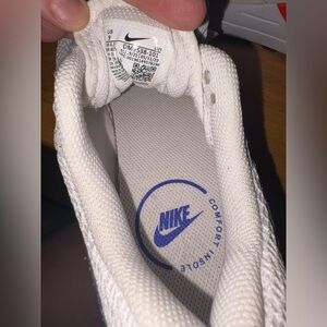 Never worn, stylish Nike sneakers with a vibrant red and blue design on a white base. Perfect for everyday wear.