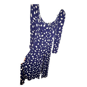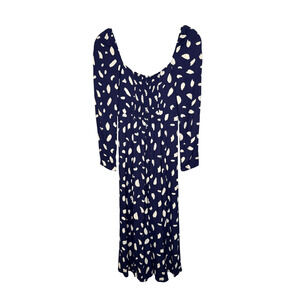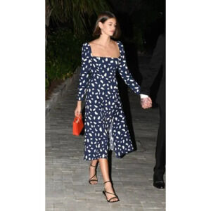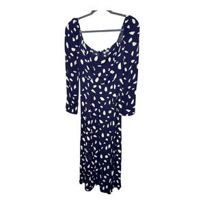 Reformation 0 Iconic Sigmund Dress $248 Long Sleeve Square Neck Midi Navy Blue