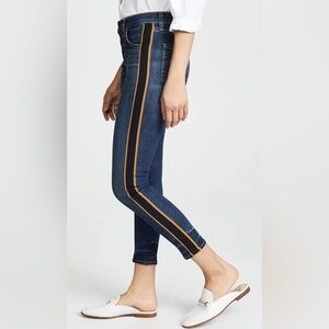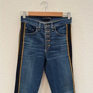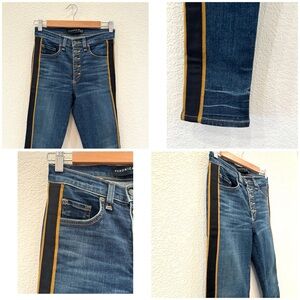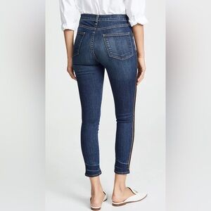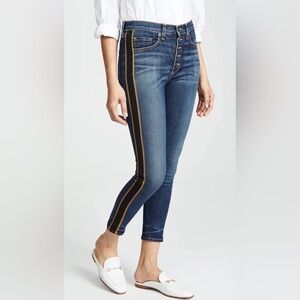 NEW Veronica Beard Crop Slim Fit Button Fly Tuxedo Stripe Jeans in Dark Wash