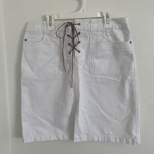 Faded Glory White Cargo Denim Mini Skirt Featuring Boho Lace Details Size 6
