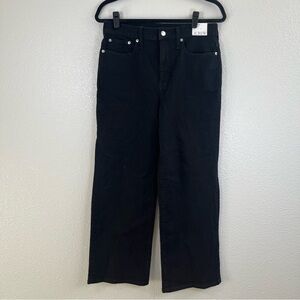Classic black wide-leg jeans from J Crew with a tailored, modern fit. High rise and a cropped ankle length. Designed for everyday comfort and a polished look. Pairs easily with jackets and heels or your favorite t-shirt.