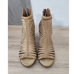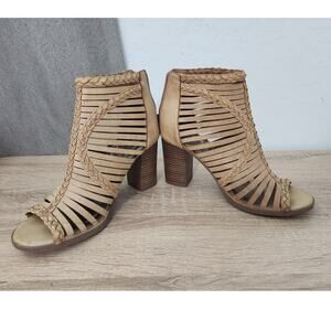 Madden Girl Size 6.5 Tan Light Brown Open toe 3.5" Heels Booties Sandals Ankle