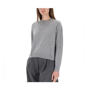 Soft grey crewneck sweater with a relaxed fit. Lightweight knit that layers easily for everyday wear. Ribbed cuffs and hem for a polished finish. Versatile grey tone pairs well with tailored or casual looks.