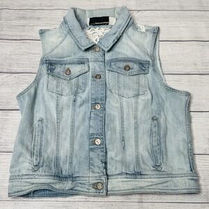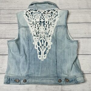 Anthropologie Pilcro & The Letterpress Denim Vest Crochet Back Insert Large Jean
