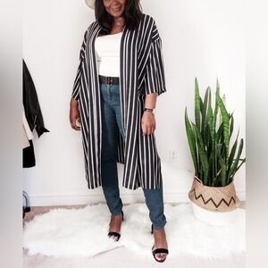 Stylish black and white striped kimono.Perfect for layering.