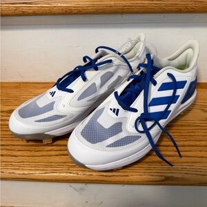 Adidas White & Royal Blue Athletic Cleats baseball/softball
