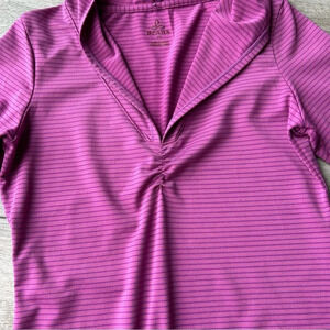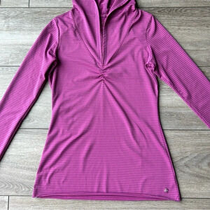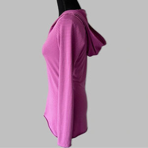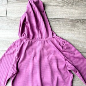 Keep the sun off with the Prana Perry Stripe Pullover. This quick-dry, wicking top has a hood and long sleeves for extra sun protection. Quick-drying stretch fabric is made from 85% recycled materials.
