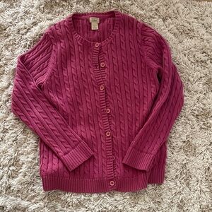 L.L. Bean Women's Cable Knit Button-Front Cardigan - Raspberry Pink