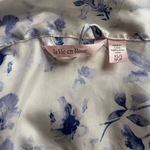 La Vie En Rose White Satin Floral Robe with Blue Print