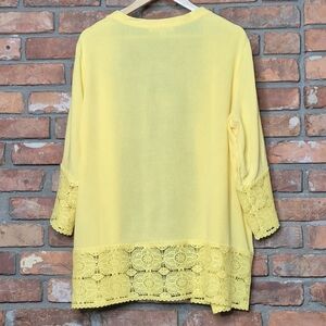 Cleo Yellow Lace Trim Kimono Cardigan XXL Boho Lightweight Duster Spring Resort