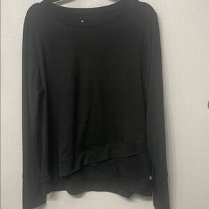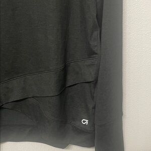 NWOT Soft brushed tech jersey long-sleeved black top from the GapFit line. Features layering at the bottom for subtle hi low effect. Wear this out and about or for a work out! Soft and cooling material, very flattering.
