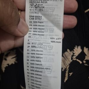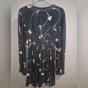 Elegant black dress with cream floral pattern. Long sleeves and button-down front. Perfect for any occasion.
