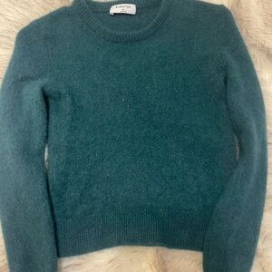 Soft, cozy crewneck sweater in deep green. Lightweight yet warm knit with a flattering fitted silhouette. Perfect for layering or wearing on its own. Versatile for everyday wear. Some pilling