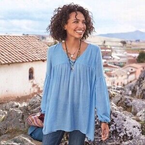 Sundance Waning Moon Balloon Sleeve Top Light Blue Lightweight Women’s Size XS
