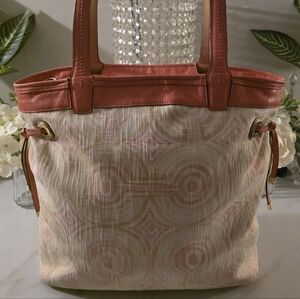 Coach Pink and Cream Signature Tote