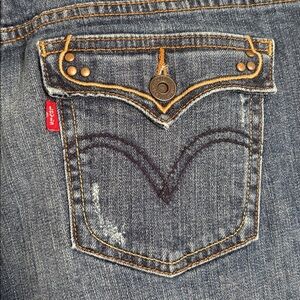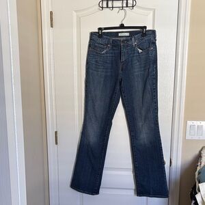 Levi's 515 Dark Blue Boot Cut Mid-Rise Slight Distressing Jeans
