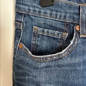 In EUC. Does have some slight distressing. Back button up pockets. Measurements lying flat are approximately 40” in length; 15” across waist; inseam is approximately 29” and rise is approximately 8.5”