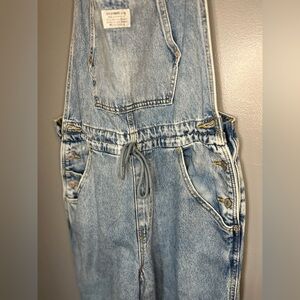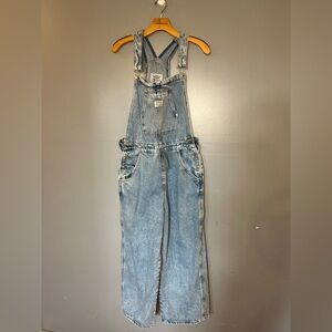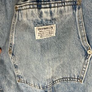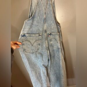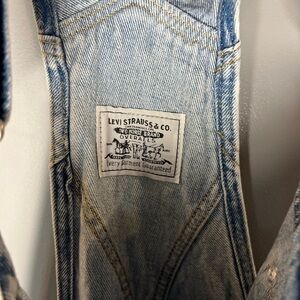 Chic Levi's denim overalls. Adjustable straps. Relaxed fit for comfort.